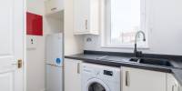 This beautifully presented home comprises; hall, sitting room, stylish fitted kitchen with the white goods included, two double bedrooms, most attractive shower room with a dual shower. The flat has gas fired central heating and double glazing along with a hedged front garden and a private rear garden. There is also access to a shared rear drying green.