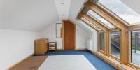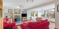 The accommodation comprises; entrance vestibule, hall, downstairs wc, lovely large lounge with a multi-fuel stove, “glass wall” and French doors, dining room with patio doors, family room/6th bedroom, breakfasting kitchen with appliances. First floor; two double bedrooms with access onto a large balcony enjoying the magnificent view, two further bedrooms and an attractive shower room. On the top floor there is a double bedroom which has its own “sit out” balcony and an adjacent dressing room and bathroom. The house has gas central heating, double glazing, a generous, mature rear garden and a nicely planted front garden. There is also a tandem garage which is approached via a double width drive.