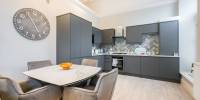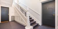 Avon Hall is a beautiful detached Victorian villa built in a traditional Scots Baronial style, with French influences for the local entrepreneur John Fairley in 1878. Converted into five luxury flats in 2019, Apartment 3 is a two bedroom ground floor flat offering a superb blend of traditional and contemporary features. The property is factored and is entered via an impressive communal circular entrance hall served by a secure entryphone system. The flat has many features, including; oak apartment doors and flooring, modern shutters, high ceilings with elaborate cornicing, tall windows, gas central heating and double glazing. The move in accommodation comprises; hall, superb open plan bay windowed lounge/dining room with a fully fitted stylish kitchen, master bedroom with built-in wardrobe and en suite shower room, second double bedroom with two built-in wardrobes, bathroom with white three piece suite. The property is set within well maintained communal gardens and there is private residents, off street parking.