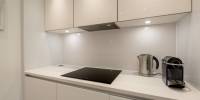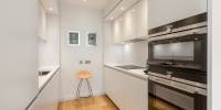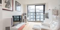 This immaculate property is in true move in condition. The shared entrance at ground floor level is served by a video entry system plus a lift and stairs to all levels. This beautiful east facing flat enjoys lots of natural light and a southerly aspect. The accommodation is in move in condition and comprises; hall with excellent storage/utility cupboard, gorgeous sitting dining room with a “sliding glass wall” and oak flooring, open plan Leicht designer fitted kitchen with Silestone worktops, double bedroom with “sliding glass wall” and a built in wardrobe, well appointed stylish shower room. The property has double glazing, a communal gas central heating system and there is a Hyperoptic installation point at the flat’s entrance door. The quality contemporary style furniture is available by separate negotiation. An important feature is that this flat has its own private allocated parking space in the secure underground car park. The factored building sits within pretty communal landscaped gardens.