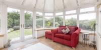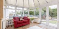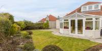 Enjoying a cul de sac setting and excellent views, this delightful home offers family sized accommodation arranged over two levels. The ground floor comprises; entrance vestibule, impressive reception hall, bay windowed sitting room with an attractive fireplace housing a gas living flame fire, dining room, substantial conservatory, breakfasting kitchen with French doors to the rear garden, modern downstairs bathroom including a separate shower, two double bedrooms – one with a bay window. Upstairs has a master bedroom with an en suite shower room and another bedroom. The house has gas central heating and double glazing. The property enjoys a lovely, enclosed and screened rear garden, grassed and with a generous patio. There is a side garden which has a green house and there is a pretty front garden. An extensive driveway leads to a single garage.
